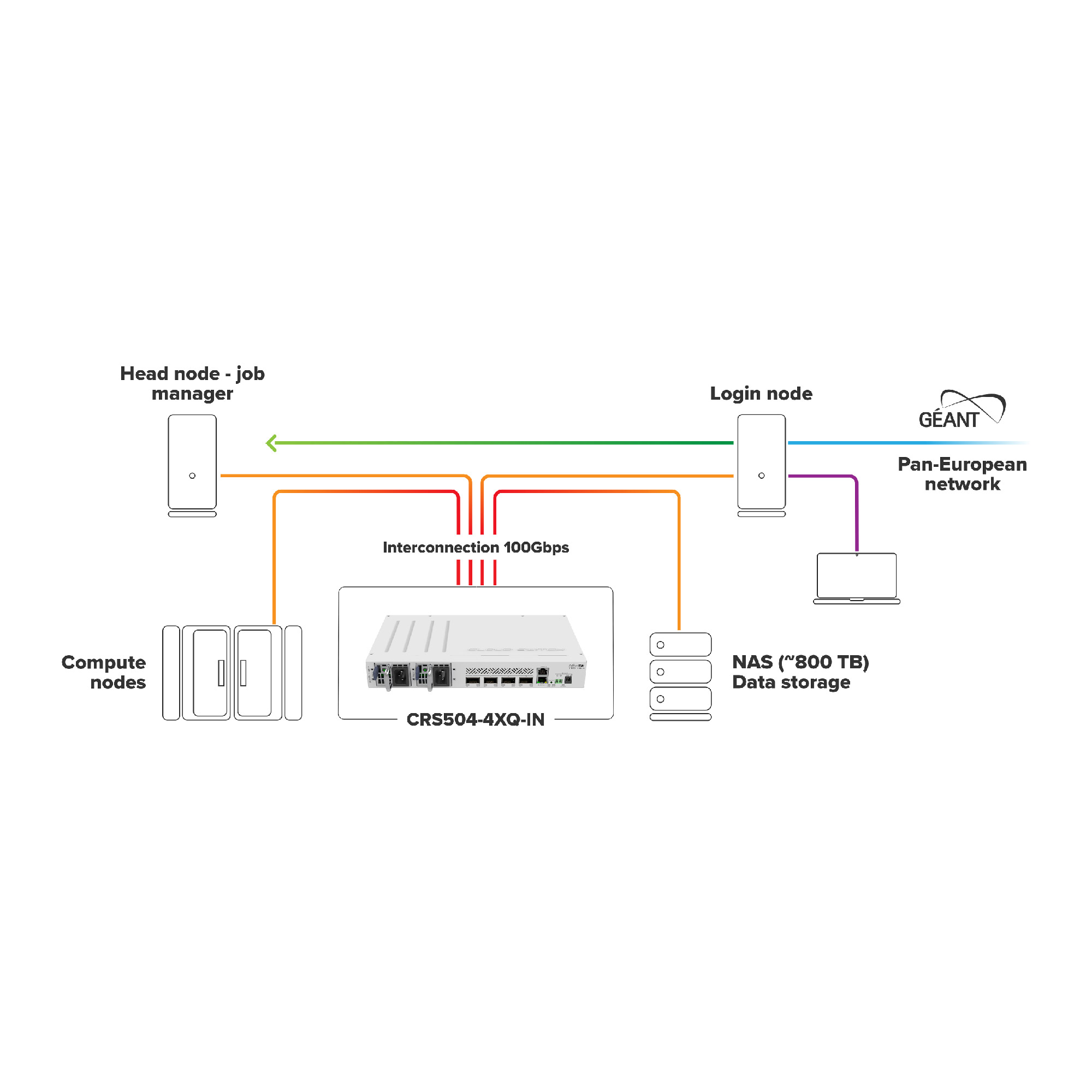 Our 100 Gigabit family keeps expanding – you’ve already seen the amazing CCR2216 100 Gigabit router. Now it’s time for a switch to match – the CRS504-4XQ-IN . Small size combined with low power consumption (¡25 W sin accesorios!) is perfect for starting to expand your 100 Gigabit network in everyday setups. This speed is no longer limited to data centers, ISPs, and large offices. You too can upgrade your network to 10 or 25 Gigabits and join the 100 club!